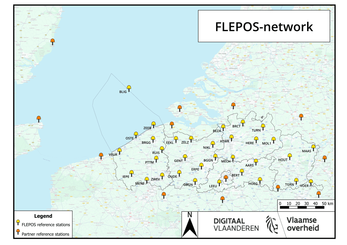 Correctie-signalen komen van het Vlaamse FLEPOS-netwerk, met vijftigtal referentie-stations